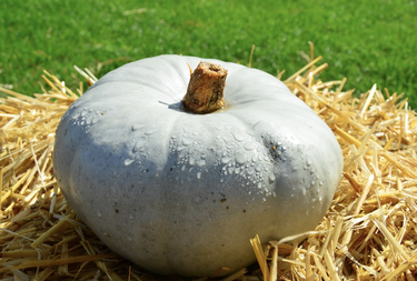 Die Farbe blau-grau. Das Fruchtfleisch ist leuchtend, gelb-orange, fest, feinkörnig und süss.